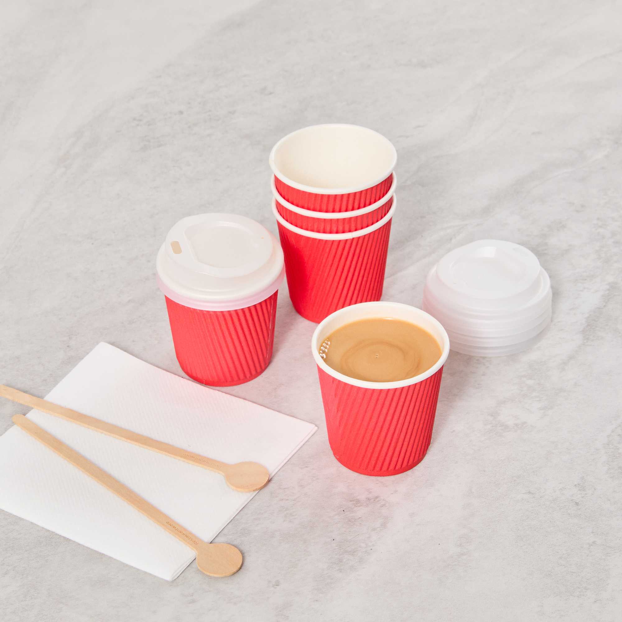 4 OZ RED PAPER COFFEE CUP - RIPPLE WALL