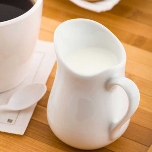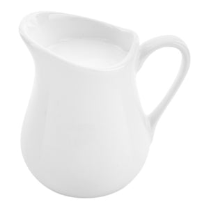 Precise pouring with our Chef 101 4-ounce Round White Porcelain Classic Cream Cup. The Chip-Resistant Porcelain Creamer is designed with a built-in handle and wide spout, ensuring precise pouring of milk or cream, which is essential for maintaining control in high-traffic settings. This small porcelain pitcher features a high-quality porcelain design that is chip-resistant, making it ideal for long-lasting use in busy foodservice settings. Its microwave-safe design allows for quick reheating of contents, offering convenience during peak hours. The timeless white finish of this porcelain creamer complements a variety of dining aesthetics, enhancing the overall dining experience. Simplify cleanup with its dishwasher-safe attribute, saving precious time and labor costs in commercial kitchens. Measuring 3 inches long by 2.5 inches wide by 3.25 inches tall, this white porcelain creamer can contain up to 4 ounces. Sold in a 1 count box.