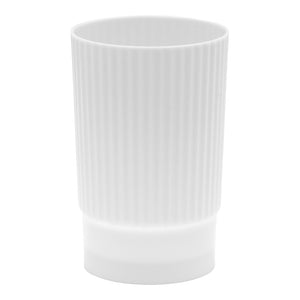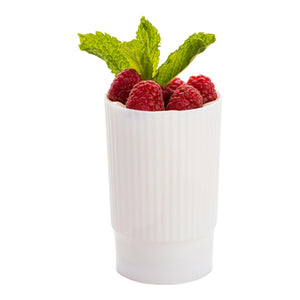 Dazzle your guests with creative food presentations in our Mini Serve 4-ounce White Plastic Toque Parfait Cups. Featuring a ribbed design and glossy white finish, these parfait cups bring a contemporary look to individual servings of delicious appetizers, hors d'oeuvres, or desserts. These small parfait cups are specially designed to look like a chef's toque hat to add a unique and intriguing element to any appetizer or dessert presentation. Made from high-quality plastic, these durable parfait cups are conveniently disposable and recyclable to ensure an easy cleanup after catered events. Each of these small plastic cups measures 2.25 inches in diameter by 3.25 inches in height and can contain up to 4 ounces. Sold in a 100 count box.