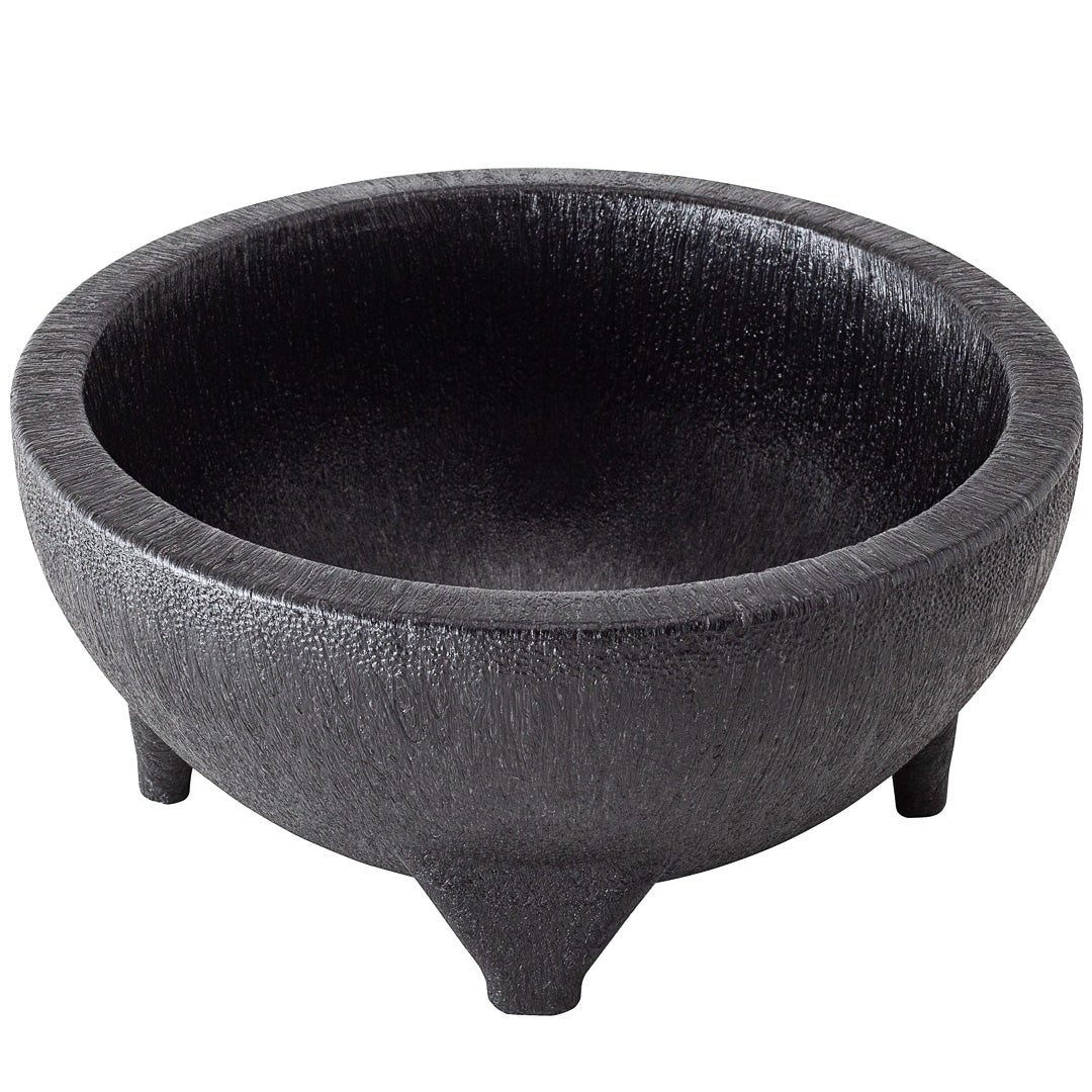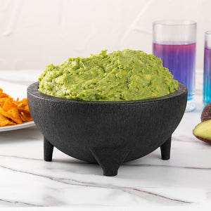 Use our Chef 101 56-ounce Round Black Thermal Plastic Molcajete Bowls to serve family-style appetizers or sauces. With a 3-legged design, these molcajete bowls bring a stylish and authentic look to Mexican-inspired side dishes served at your foodservice establishment. Featuring a classic black finish, these molcajete bowls create the perfect backdrop to showcase the freshness of appetizers or vibrant colors of your signature sauces. Constructed from break-resistant plastic, these large molcajete bowls are naturally durable and safe for serving large portions of pico de gallo, guacamole, salsa verde, and other hot or cold condiments. These plastic salsa bowls are microwave-safe, allowing you to quickly heat up sauces or starters before serving. Containing up to 56 ounces, these large salsa bowls are ideal for pairing family-style dishes with condiments or serving appetizers for large parties. These black molcajete bowls measure 8.75 inches in diameter by 4 inches tall. Sold in a 10 count box.
