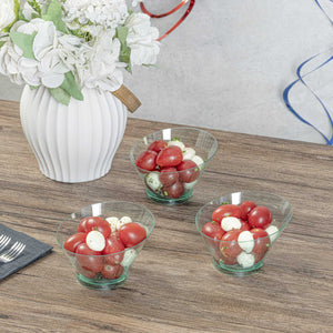 Elevate your customers' dining experience with our Mini Serve 7-ounce Round Seagreen Plastic Incline Bowls. The distinct sloping edge of these mini soup bowls lends a creative touch to your food presentations. Designed with a deep structure, these disposable bowls provide a generous basin to serve soups, stews, desserts, and other culinary masterpieces. Sporting a premium construction, these incline bowls offer an environmentally conscious alternative for serving food. Convenient to dispose of after use, these robust plastic bowls facilitate easy clean-up. The transparent seagreen finish of these durable plastic bowls adds an element of sophistication to your food displays. With a 7-ounce capacity, these mini fruit bowls measure 4.25 inches in length by 4.25 inches in width by 2.75 inches in height. Sold in a 100 count box.