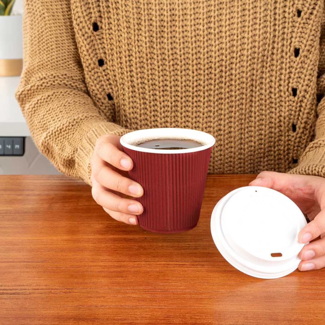 8 OZ CRIMSON PAPER COFFEE CUP - RIPPLE WALL