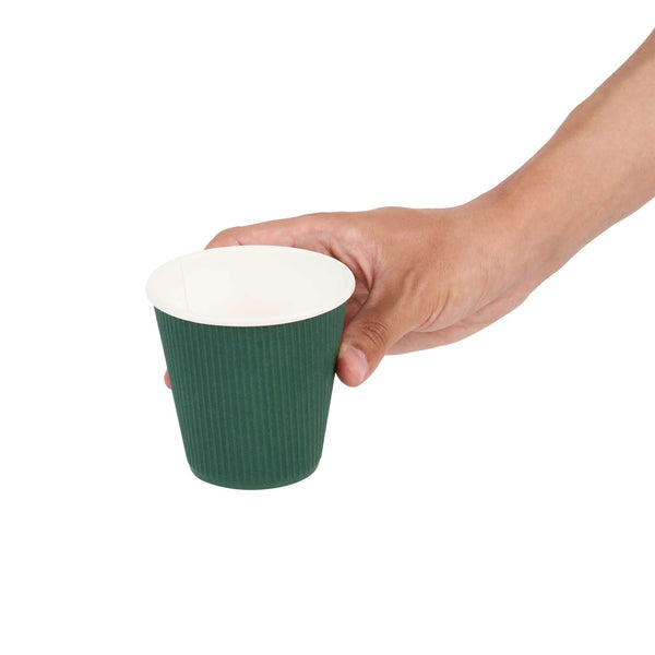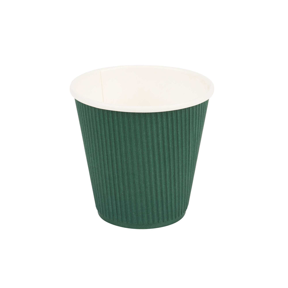 8 OZ FOREST GREEN PAPER COFFEE CUP - RIPPLE WALL