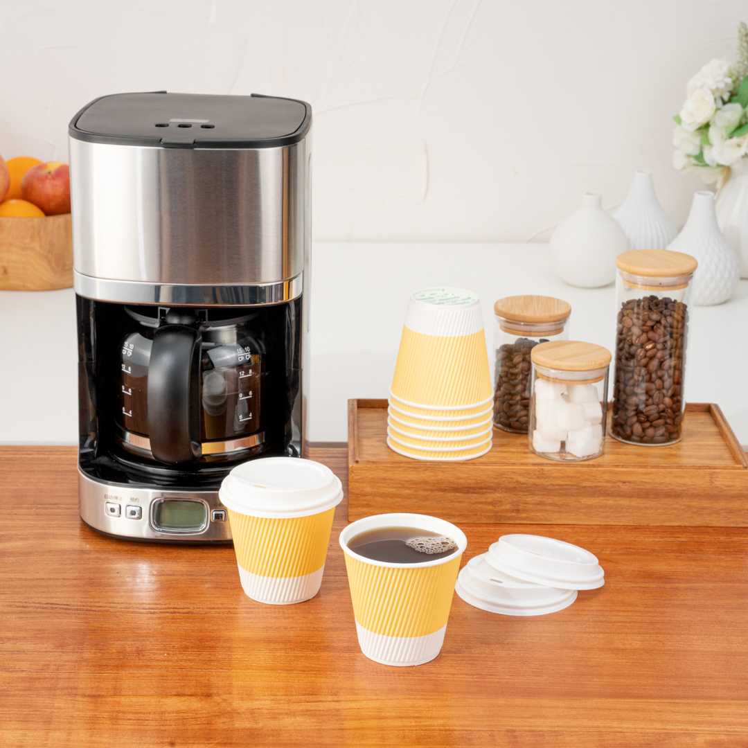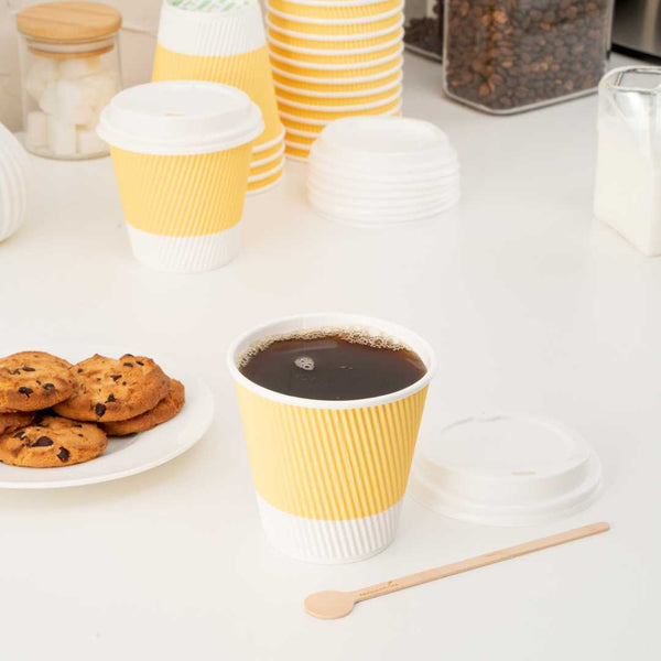 8 OZ LIGHT YELLOW PAPER COFFEE CUP - RIPPLE WALL
