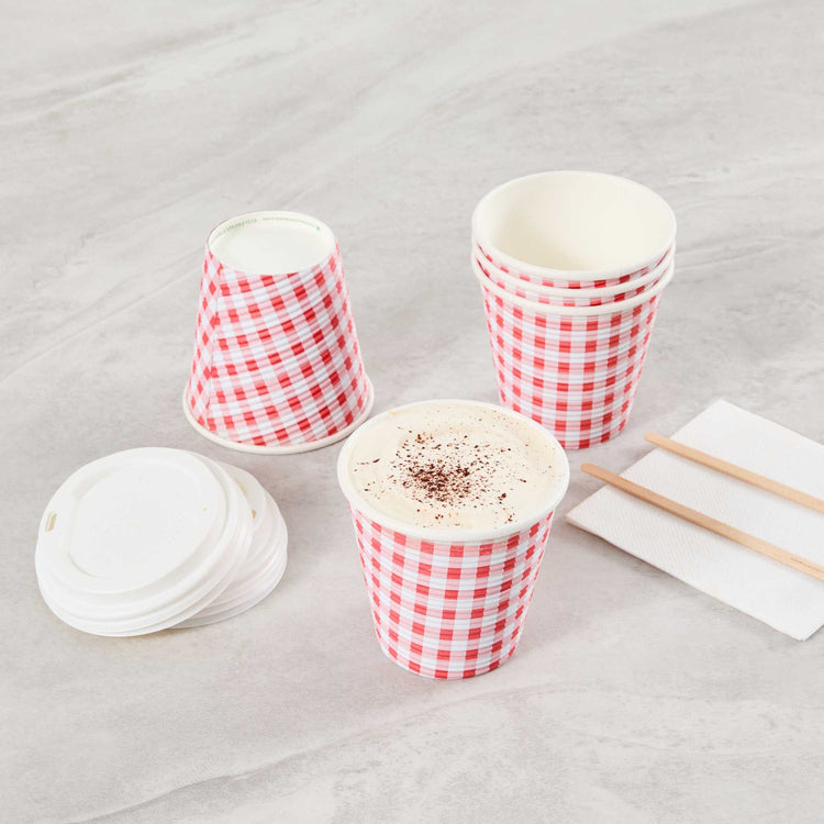 8 OZ PICNIC PRINT PAPER COFFEE CUP - SPIRAL WALL