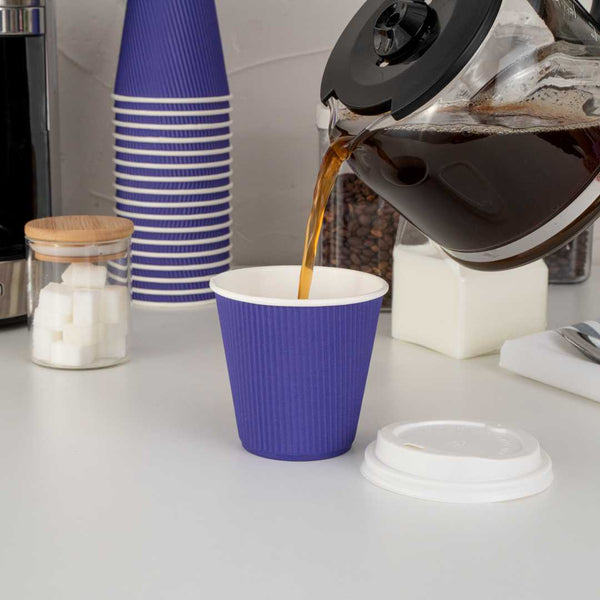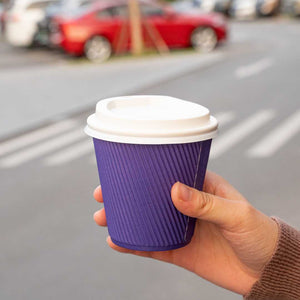 8 OZ ROYAL PURPLE PAPER COFFEE CUP - RIPPLE WALL