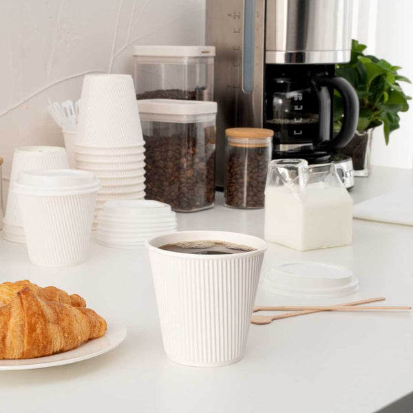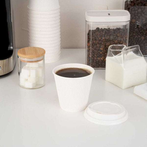 8 OZ WHITE PAPER COFFEE CUP - RIPPLE WALL