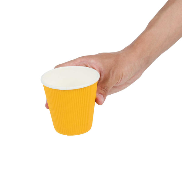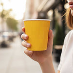 8 OZ YELLOW PAPER COFFEE CUP - RIPPLE WALL