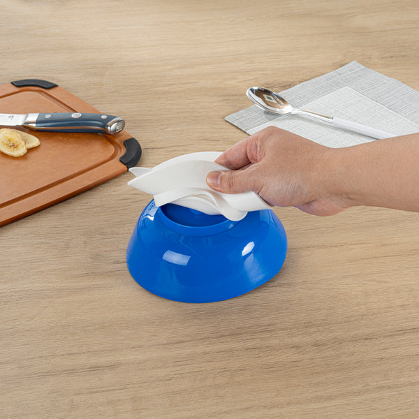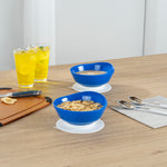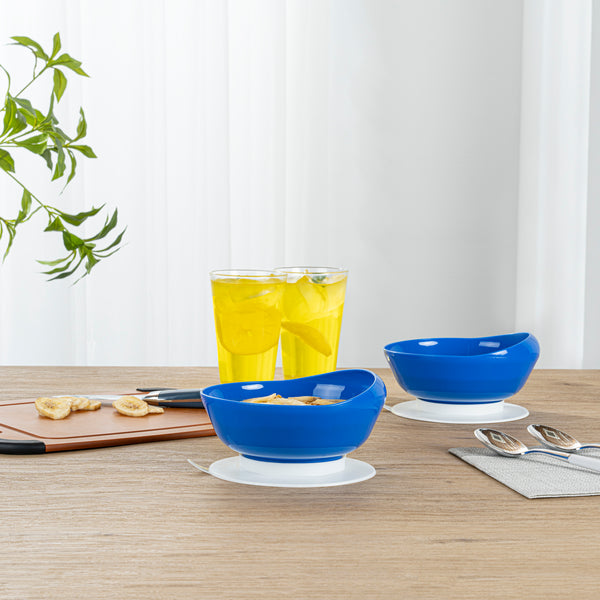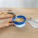19 OZ ROUND BLUE PLASTIC SCOOP BOWL - SPILLPROOF, WITH SUCTION BASE