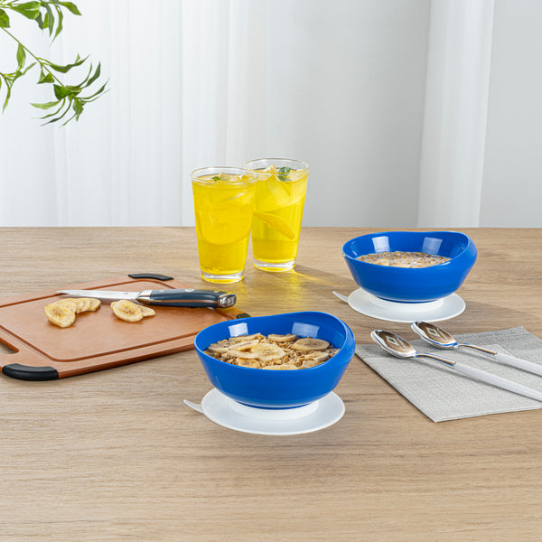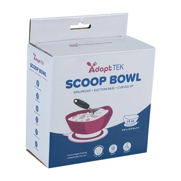 Enhance independent dining with the Adapt Tek Non-Slip Adaptive Scoop Bowl. This adaptive scoop bowl features a non-skid suction base that keeps it firmly in place. The high-to-low contour lip of this self feeding bowl guides food effortlessly onto utensils, promoting independence and confidence during meals. Constructed from premium plastic, this non-skid suction bowl is both microwave and freezer safe, accommodating a variety of foodservice applications by allowing easy meal prep and storage. Its calming blue color enhances food contrast, improving visibility for individuals with vision impairments, making it ideal for nursing homes and rehabilitation facilities. The dishwasher-safe design ensures quick and hassle-free cleaning, saving valuable time in busy foodservice settings. This adaptive scoop bowl is a reliable choice for enhancing mealtime experiences. Each order includes 20 Adapt Tek Non-Slip Adaptive Scoop Bowl.
