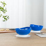 19 OZ ROUND BLUE PLASTIC SCOOP BOWL - SPILLPROOF, WITH SUCTION BASE