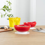 19 OZ ROUND RED PLASTIC SCOOP BOWL - SPILLPROOF, WITH SUCTION BASE