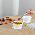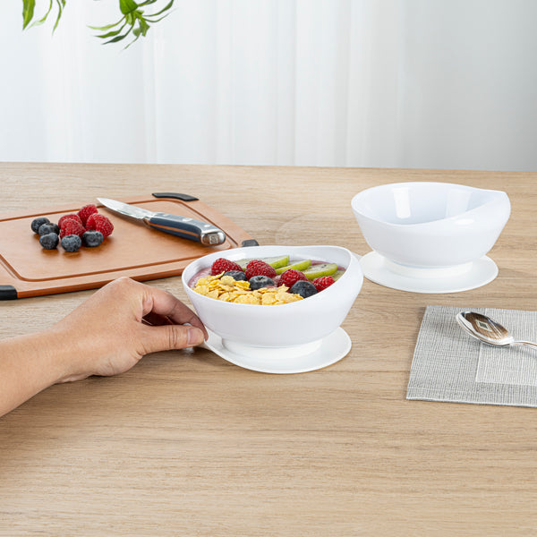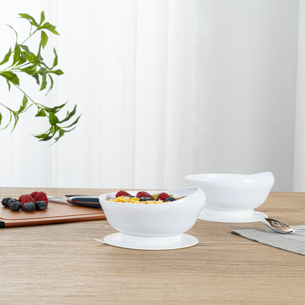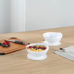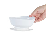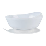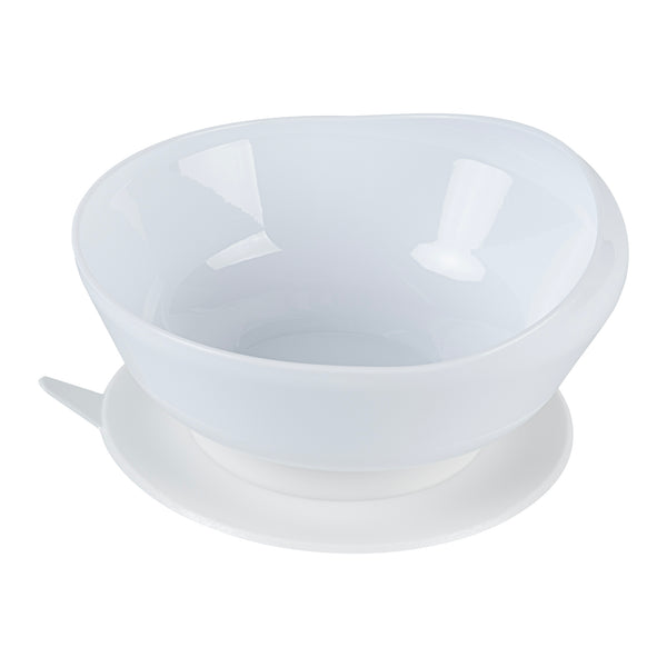 19 OZ ROUND WHITE PLASTIC SCOOP BOWL - SPILLPROOF, WITH SUCTION BASE