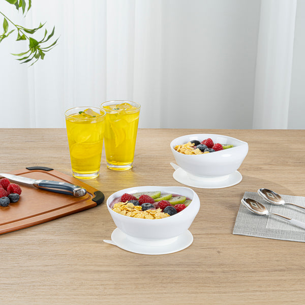 Ensure easy, spill-free dining with our Adapt Tek Non-Skid Base Spill Proof Bowl. Designed with an anti-skid rubber suction bottom, this spill proof bowl securely stays in place, facilitating smooth scooping and minimizing accidents. The Adapt Tek one-handed eating bowl features deep sides and a wide rim, enabling individuals with limited mobility to enjoy their meals independently. Constructed from premium plastic, this suction base bowl is microwave, freezer, and dishwasher safe, ensuring seamless cleanup and versatile storage options. Measuring 5.79 inches in diameter and 2.95 inches in height, its high-to-low contour lip guides food effortlessly onto utensils, enhancing the dining experience for users. Ideal for nursing homes, rehabilitation centers, and home use, this adaptive bowl supports individuals with sensory sensitivities. Invest in operational efficiency and user comfort with this innovative dining solution. Each order includes 20 Adapt Tek Non-Skid Base Spill Proof Bowls.