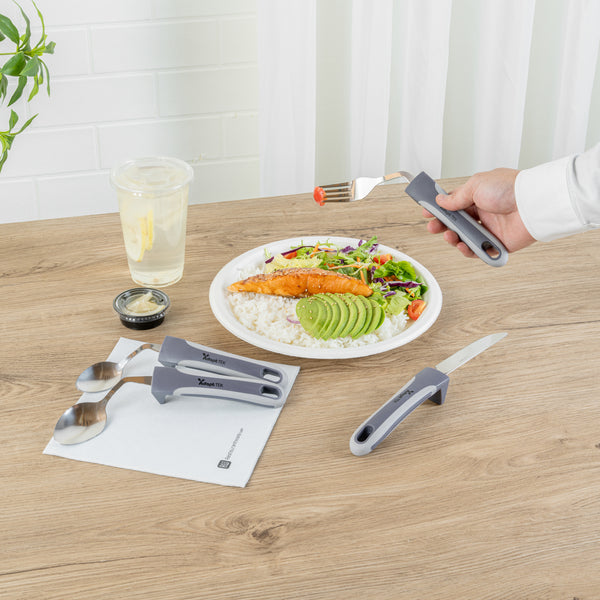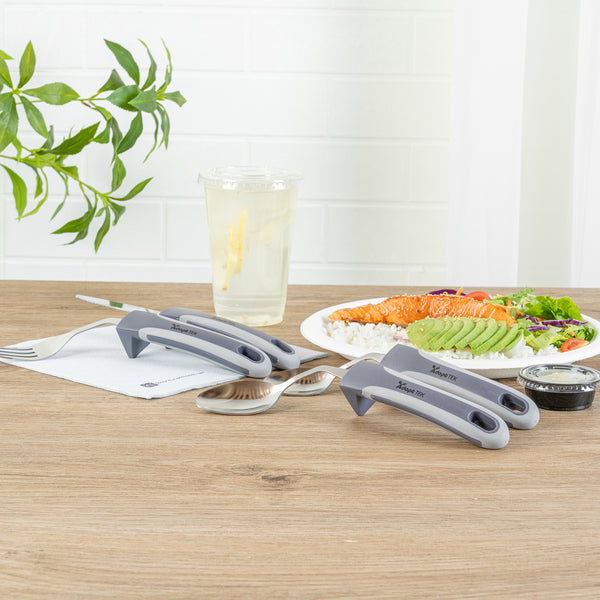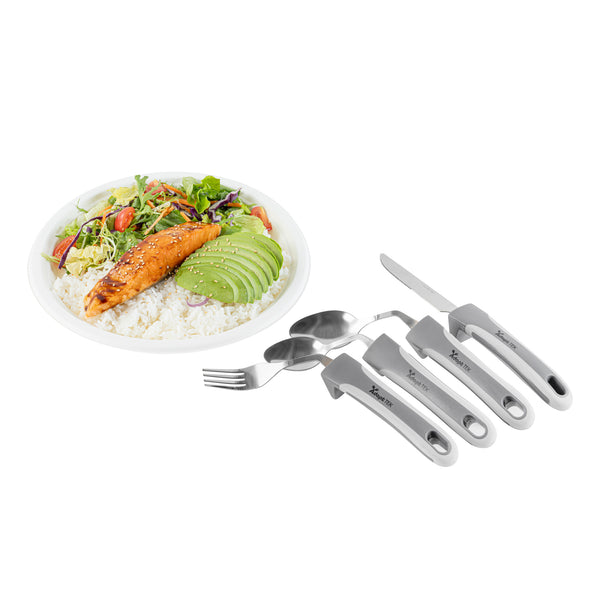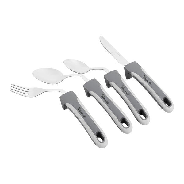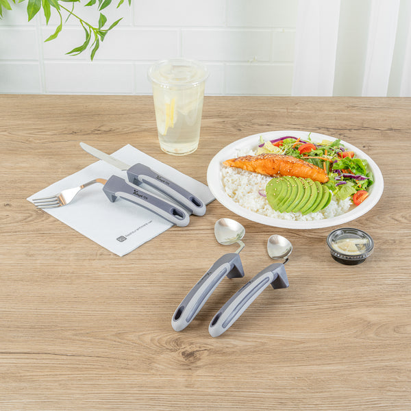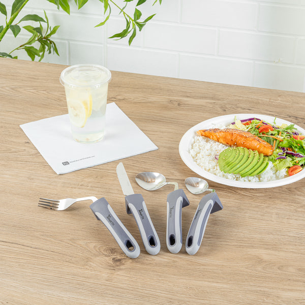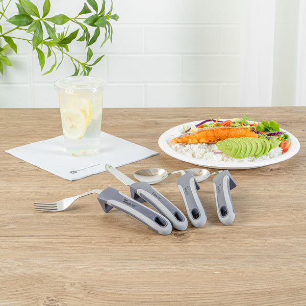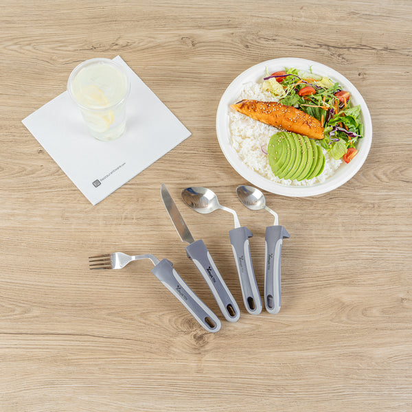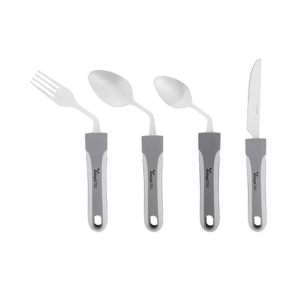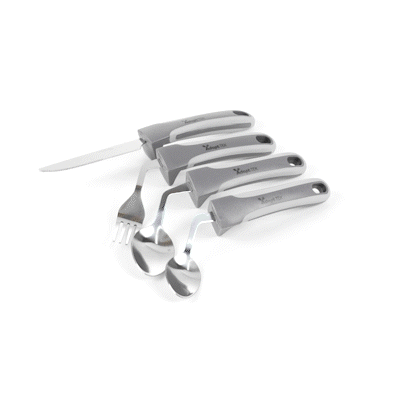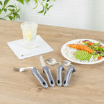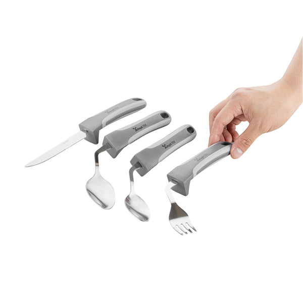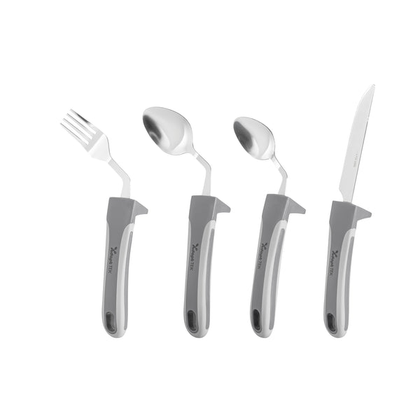 GRAY STAINLESS STEEL 4-PIECE ADAPTIVE OFFSET UTENSIL SET - RIGHT HAND