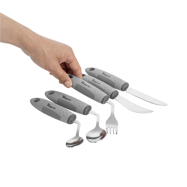 GRAY STAINLESS STEEL 5-PIECE ADAPTIVE OFFSET UTENSIL SET - LEFT HAND