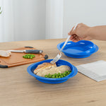 ROUND BLUE PLASTIC SCOOP PLATE - SPILLPROOF, WITH SUCTION BASE