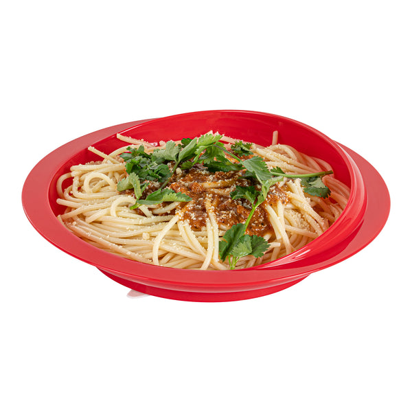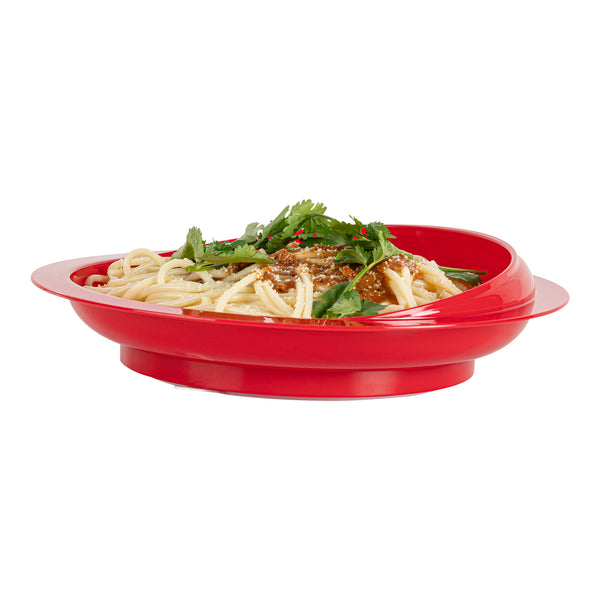 Enhance dining independence with our Adapt Tek Non-Skid Scoop Plate. Designed with an anti-skid rubber suction bottom, this scoop plate stays securely in place, minimizing spills and facilitating easy service. Its deep sides and high-to-low contour lip provide optimal control, enabling effortless one-handed use, making it an ideal self-feeding plate for individuals with limited mobility. Constructed from high-quality plastic, this adaptive dinnerware is microwave, freezer, and top-rack dishwasher safe, ensuring a quick turnaround in busy foodservice operations while maintaining durability. With a vibrant red color that stimulates appetite, this 9.06 inches diameter plate supports those with cognitive or vision challenges by enhancing the overall dining experience. Invest in user-friendly adaptive dinnerware that empowers independence and improves quality of life. Each order includes 20 Adapt Tek Non-Skid Scoop Plates.