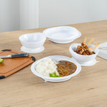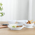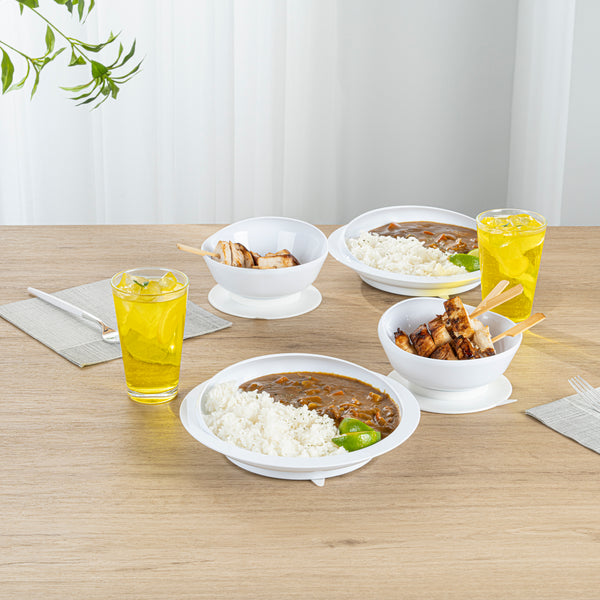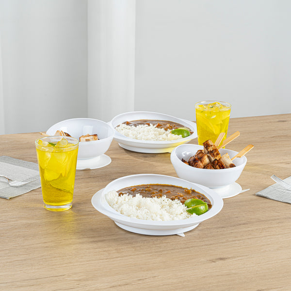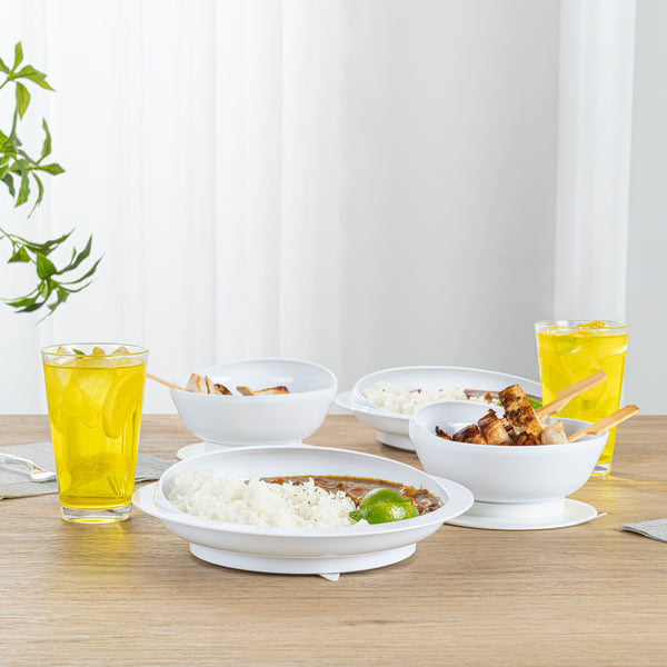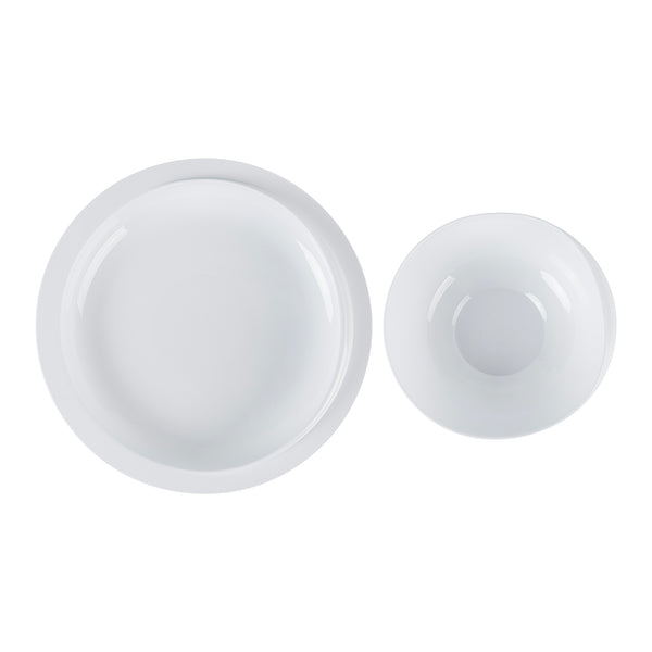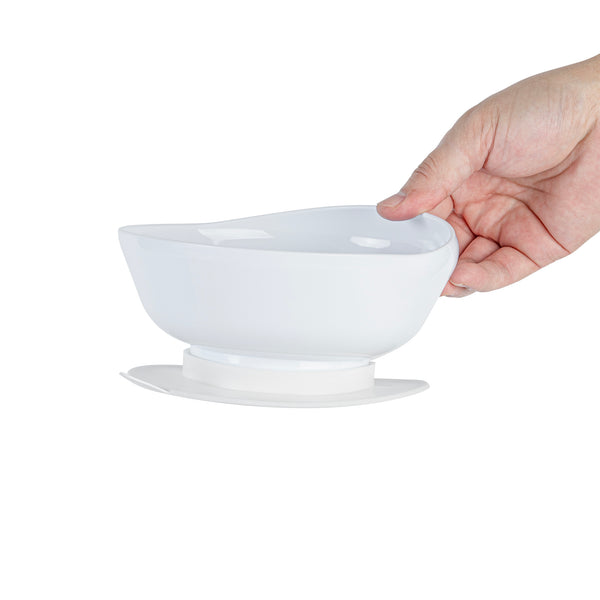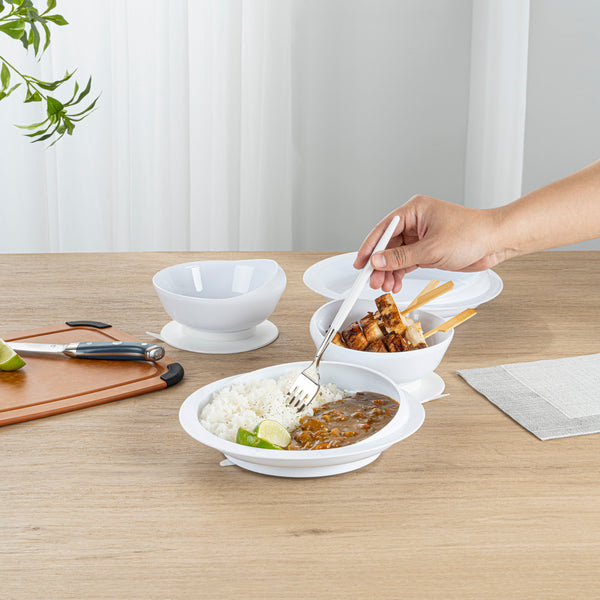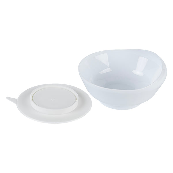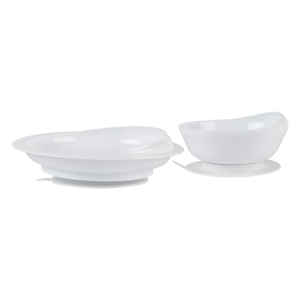 WHITE PLASTIC 2-PIECE SCOOP PLATE AND BOWL SET - SPILLPROOF
