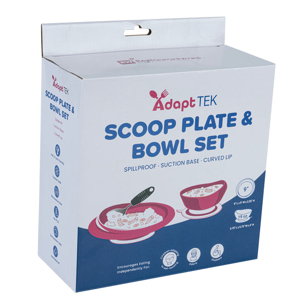 Enhance dining independence with our reliable adaptive scoop plate. The Adapt Tek Non-Slip Base Adaptive Scoop Plate and Bowl Set features deep sides and an anti-skid bottom, providing a secure eating surface that prevents spills for those with limited dexterity. Its high-to-low rim design aids in scooping food onto utensils effortlessly, making it an ideal nursing home plate for fostering autonomy during meals. Constructed from food-safe plastic, this plate is microwave, freezer, and dishwasher safe, simplifying meal preparation and cleanup in busy foodservice environments. Measuring 9.06 inches in diameter and 2.21 inches in height, it offers ample space for various meal types while ensuring stability with its non-skid silicone suction base. This adaptive scoop plate is a comprehensive dining solution, enhancing accessibility and reducing the need for multiple dishware items. Each order includes 1 Adapt Tek Non-Slip Base Adaptive Scoop Plate and Bowl Set.