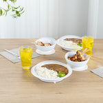 - Deep sides and wide rim prevent food spills