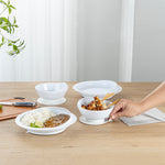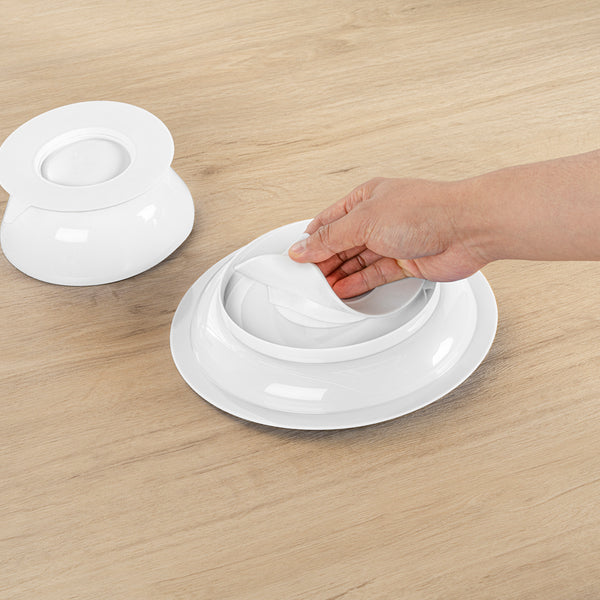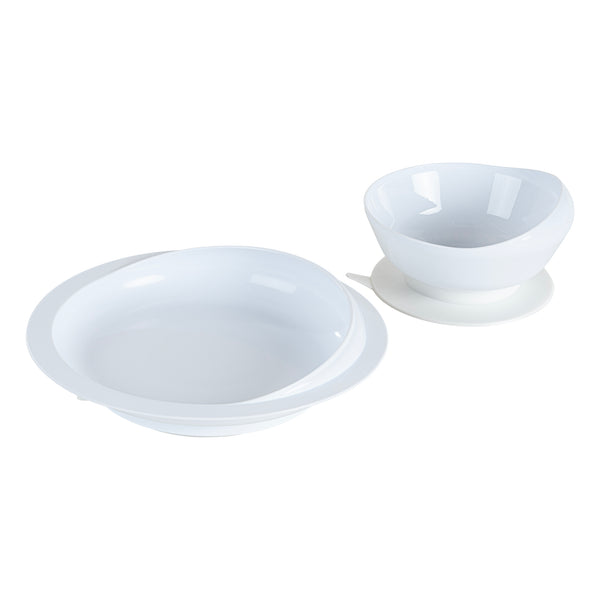 WHITE PLASTIC 2-PIECE SCOOP PLATE AND BOWL SET - SPILLPROOF