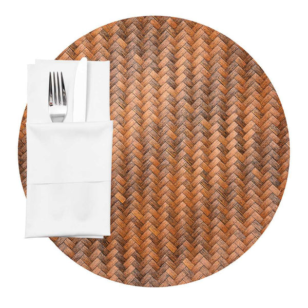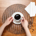 Stylishly set your tables with our Amalfi Basketweave Woven Bronze Placemats. With a beautiful woven design, these dining table mats muffle the noise of dinnerware and glassware so your customers can converse without any disturbances. Made from high-quality plastic, these placemats help prevent accidental spills from leaking through and creating watermarks on your dining tables. The bronze finish of these woven placemats gives your table settings an elegant and sophisticated look. Designed with a round shape, these plastic table mats can fit round bowls, large plates, and other tableware. For a hassle-free cleaning process in between seatings, these round table mats can be quickly wiped clean. These bronze placemats measure 15 inches in diameter. The woven design may cause slight variations in flatness, adding to their unique charm and handcrafted appearance. Sold in a 6 count box.