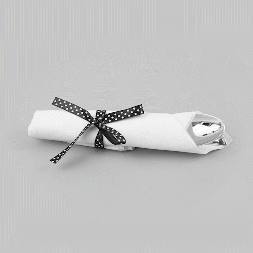 - Polka dot ribbon holds the cutlery set securely while adding a charming look