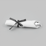 Silver Cutlery with White Napkin and Polka Dot Ribbon |