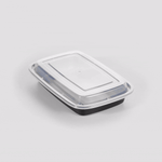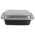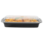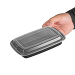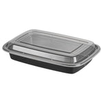 16 OZ RECTANGLE BLACK PLASTIC TO GO BOX - WITH CLEAR LID, MICROWAVABLE
