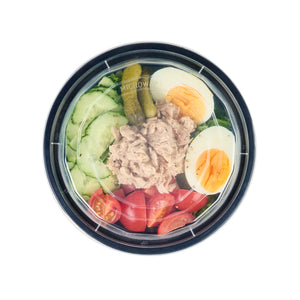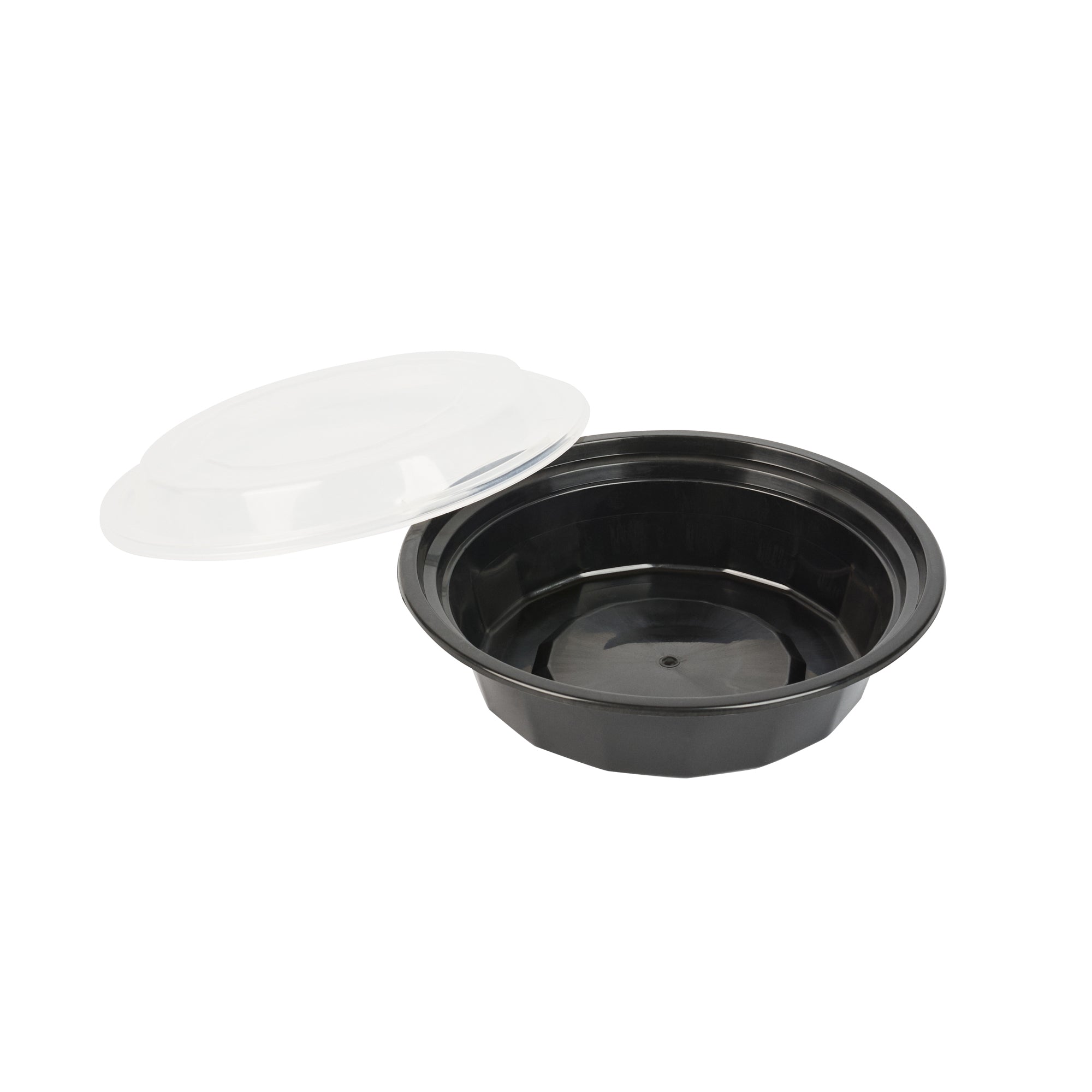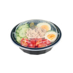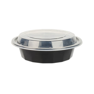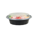 16 OZ ROUND BLACK PLASTIC TO GO BOX - WITH CLEAR LID, MICROWAVABLE