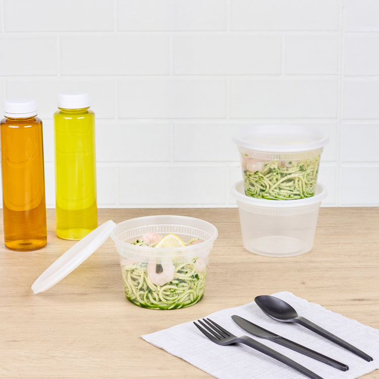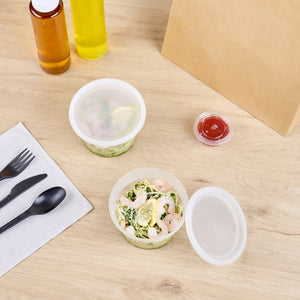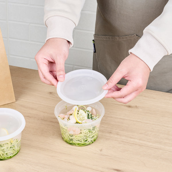 Effectively pack take out soups or snacks with our Asporto 16-ounce Round Clear Plastic Soup Containers. Crafted from BPA-free plastic, these round food containers are heat-resistant and perfect for packing various hot or cold delicious take out orders. These transparent soup containers are included with each container is a tight-fitting clear plastic lid that seals securely, preventing leaks during delivery. Microwave-safe, these clear containers for take outs allows users to easily warm up their meals. With a generous capacity of 16 ounces, these disposable to go boxes are perfect for a variety of meals. Recyclable and disposable, these carry out containers provide an environmentally responsible choice for your customers. With a clear finish, these plastic soup vessels easily reveal their contents. Measuring 4.5 inches in diameter by 3 inches in height, these clear food boxes have a capacity of 16 ounces. Sold in a 25 count box. NOTE: Lids are not for microwave use.