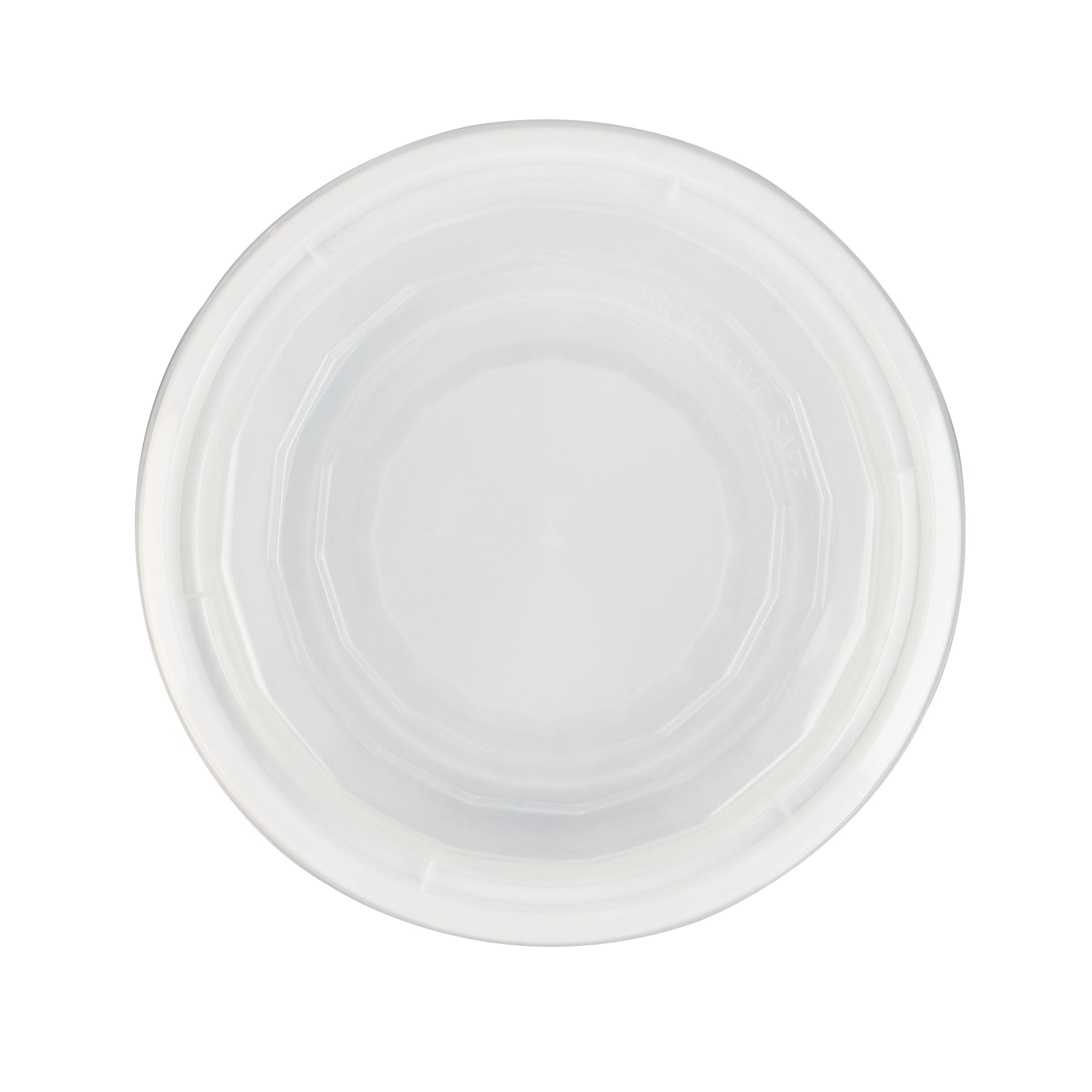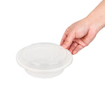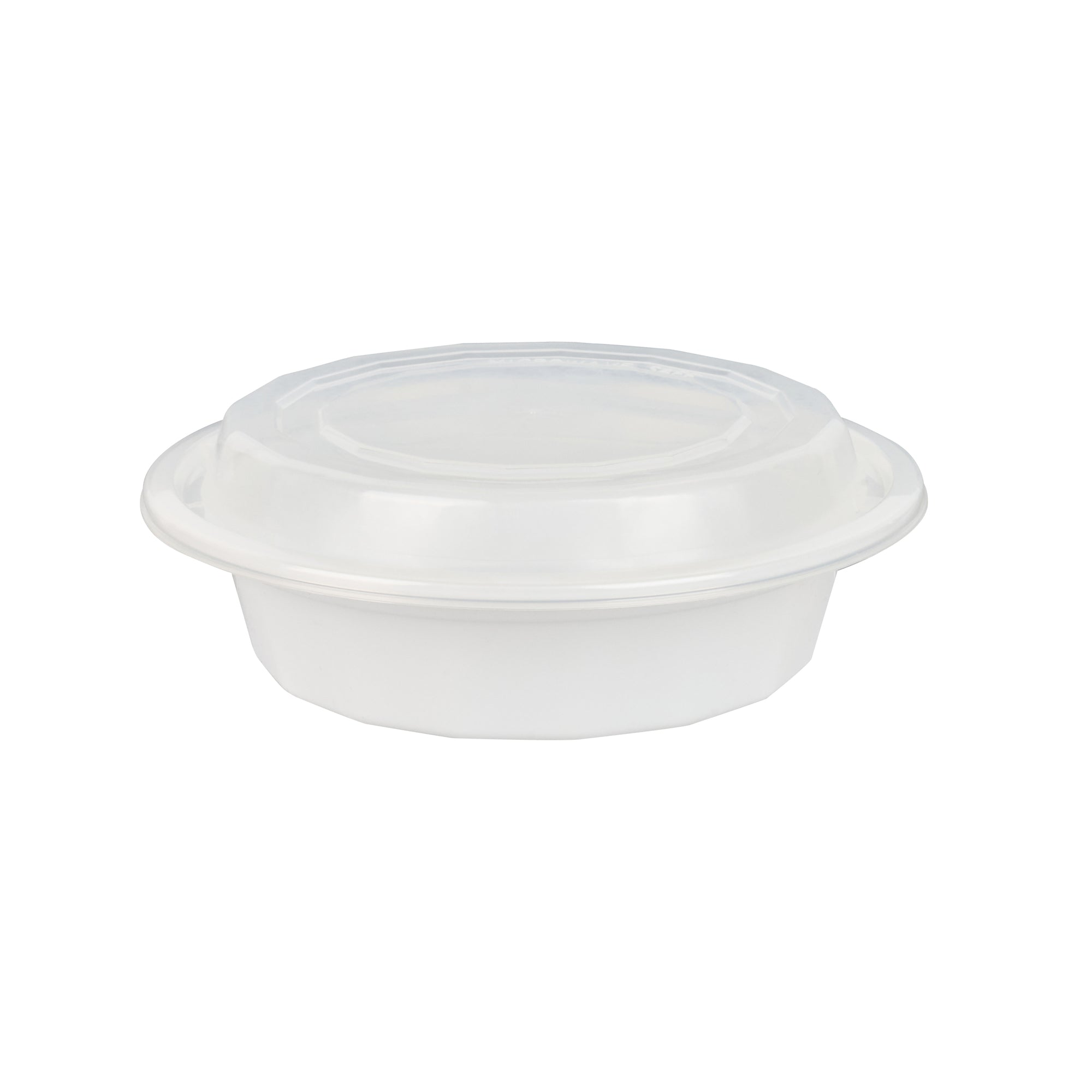 Conveniently package your customers' to go food with our Asporto 16-ounce Round White Plastic To Go Boxes. These round food containers are made from BPA-free polypropylene plastic and are heat-resistant, making them ideal for packing various types of food. With a tight-fitting clear plastic lid, these disposable carry out containers forms a secure seal that prevents potential spills during transit. These food take out containers are microwavable to easily reheat meals without the need for transferring food to a different utensil. Each plastic to go box can hold up to 16 ounces, making them the perfect vessel for serving scrumptious meals. These white take out boxes are recyclable to showcase your eco-conscious practices to your patrons and disposable to provide a swift cleanup solution. The white finish of these disposable carry out containers exudes a classy look to your take out orders. These plastic food containers measures 6.25 inches in diameter by 1.75 inches in height and have a capacity of 16 ounces. Sold in a 100 count box.