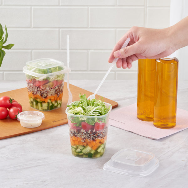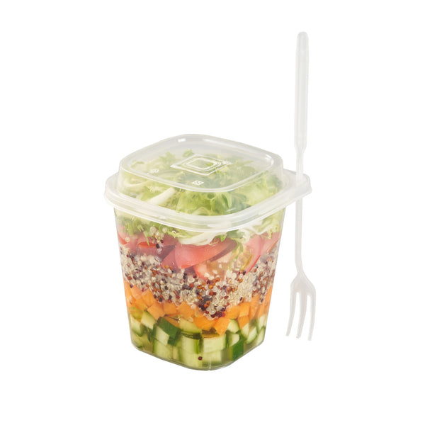 - Included fork provides convenience for customers to enjoy salads and snacks on the go