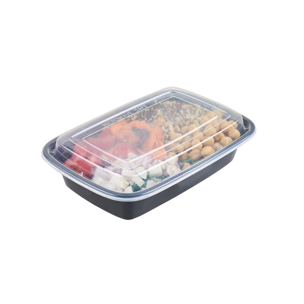24 OZ RECTANGLE BLACK PLASTIC TO GO BOX - WITH CLEAR LID, MICROWAVABLE