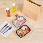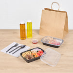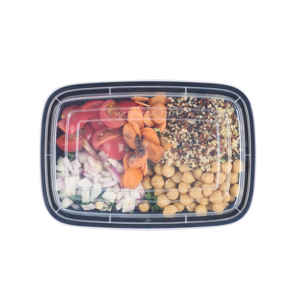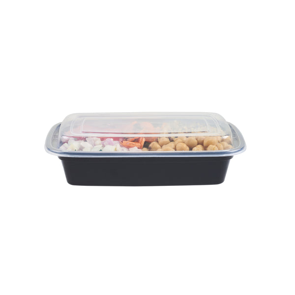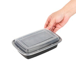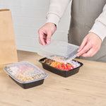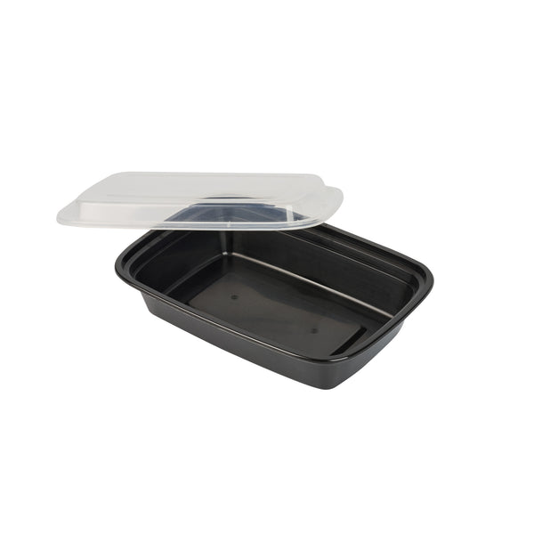 24 OZ RECTANGLE BLACK PLASTIC TO GO BOX - WITH CLEAR LID, MICROWAVABLE