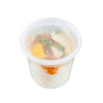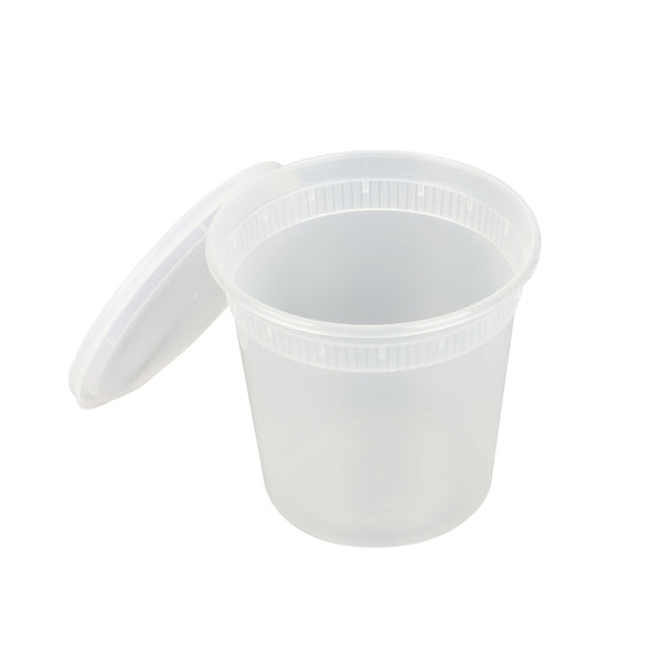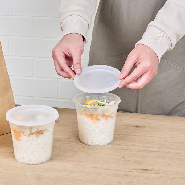 Pack soups and other dishes for take out delivery with our Asporto 24-ounce Round Clear Plastic Soup Containers. Manufactured from BPA-free plastic that is also heat-resistant, these disposable to go boxes can safely accommodate hot soups. Each round food container comes with a clear plastic lid that securely seals, significantly reducing chances of spills during delivery. These microwave-safe transparent soup containers can heat up meals without the need for switching to a different container. With a spacious 24-ounce capacity, these clear containers for take outs can hold a variety of meals. Being recyclable and disposable, these carry out containers provide an eco-conscious disposal option. The clear design of these round clear vessels allows for instant identification of the contents. These soup containers measures 4.5 inches in diameter by 4.25 inches in height and have a capacity of 24 ounces. Sold in a 100 count box. NOTE: Lids are not for microwave use.