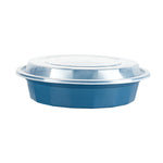 24 OZ ROUND BLUE PLASTIC TO GO BOX - WITH CLEAR LID, MICROWAVABLE