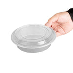 24 OZ ROUND SILVER PLASTIC TO GO BOX - WITH CLEAR LID, MICROWAVABLE