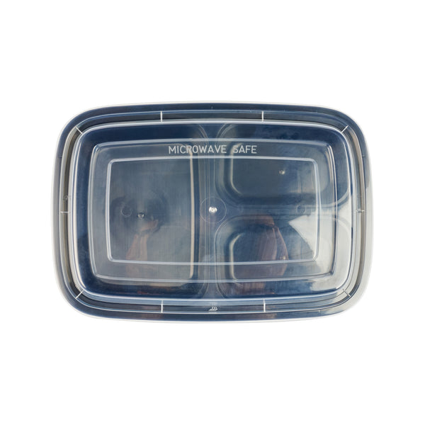 26 OZ PLASTIC 3 COMPARTMENT FOOD CONTAINER - WITH LID, MICROWAVABLE