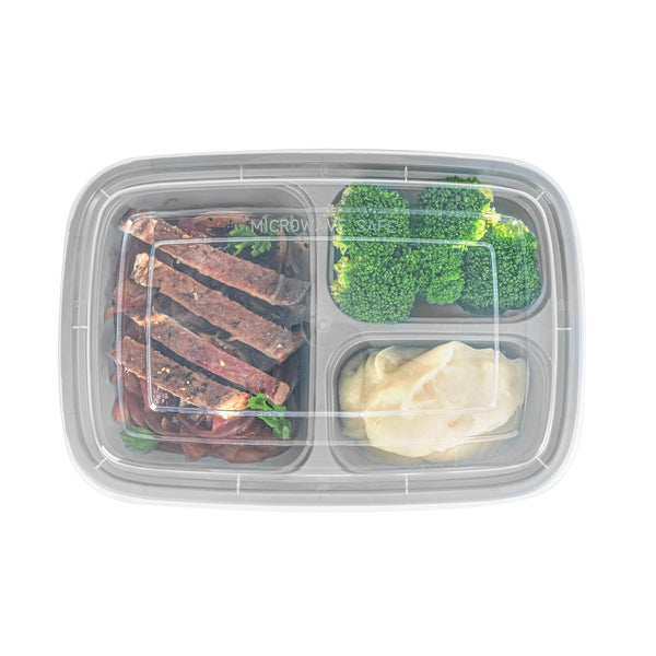 - 3-compartment design ensures separation of different food items and prevents mixing