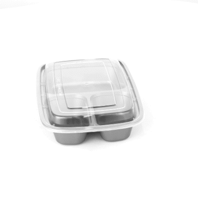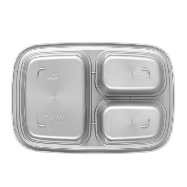 26 OZ SILVER PLASTIC 3 COMPARTMENT FOOD CONTAINER