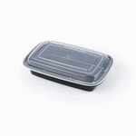 28 OZ RECTANGLE BLACK PLASTIC TO GO BOX - WITH CLEAR LID, MICROWAVABLE