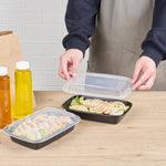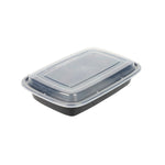 28 OZ RECTANGLE BLACK PLASTIC TO GO BOX - WITH CLEAR LID, MICROWAVABLE