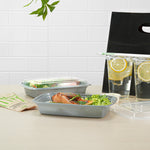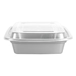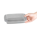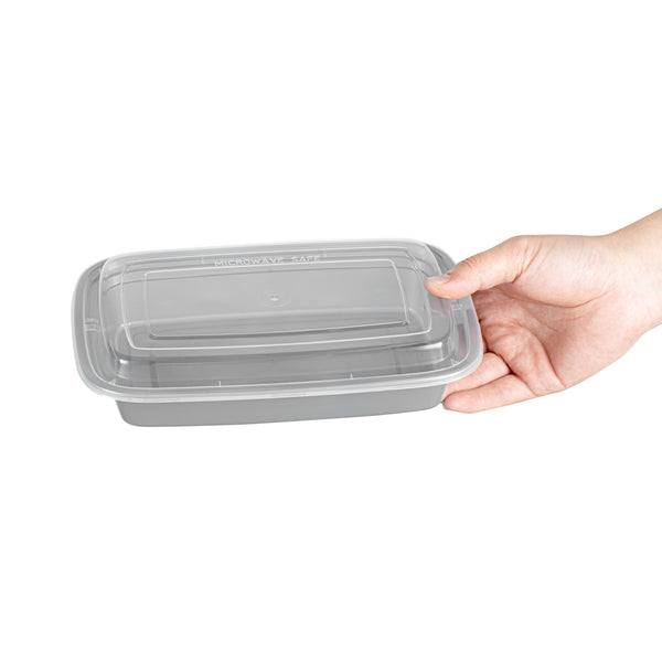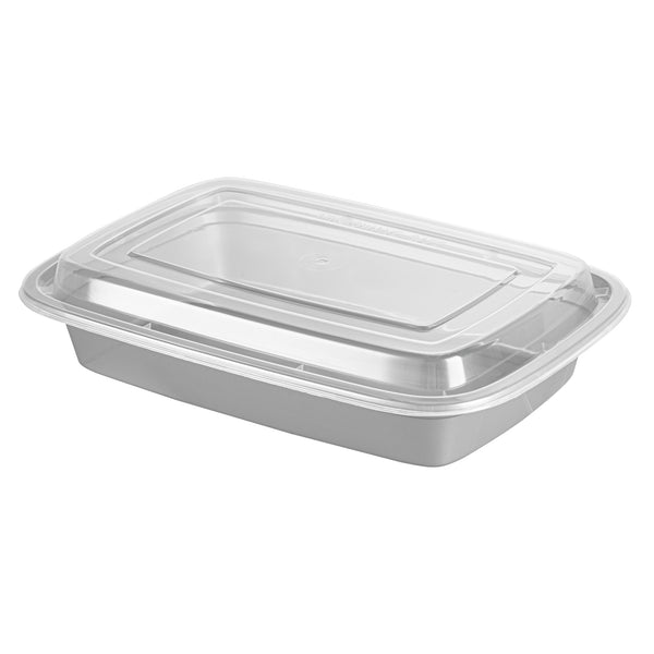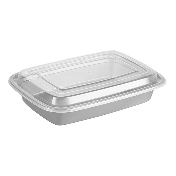 Elevate your foodservice with our Asporto 28-ounce Rectangle Silver Plastic To Go Boxes. These to go containers come with clear plastic lids and form a tight seal to keep your packed food intact during delivery. Designed to be microwave-safe, these meal prep containers allow you to easily reheat your meals easily without transferring them to a different container. These takeaway boxes are manufactured from BPA-free plastic and are suitable for packing a wide variety of hot and cold foods. Boasting a sophisticated silver finish, these to go boxes lend an elegant touch to your food presentation. These take out containers are disposable and let you discard them for an easy cleaning experience. Ideal for eco-conscious foodservice establishments, these disposable take out boxes are recyclable. Measuring 8.75 inches in length by 6 inches in width by 1.5 inches in height, these carry out containers can hold up to 28 ounces and offer ample space for packing your culinary creations. Sold in a 100 count box.