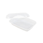 28 OZ RECTANGLE WHITE PLASTIC TO GO BOX - WITH CLEAR LID, MICROWAVABLE