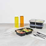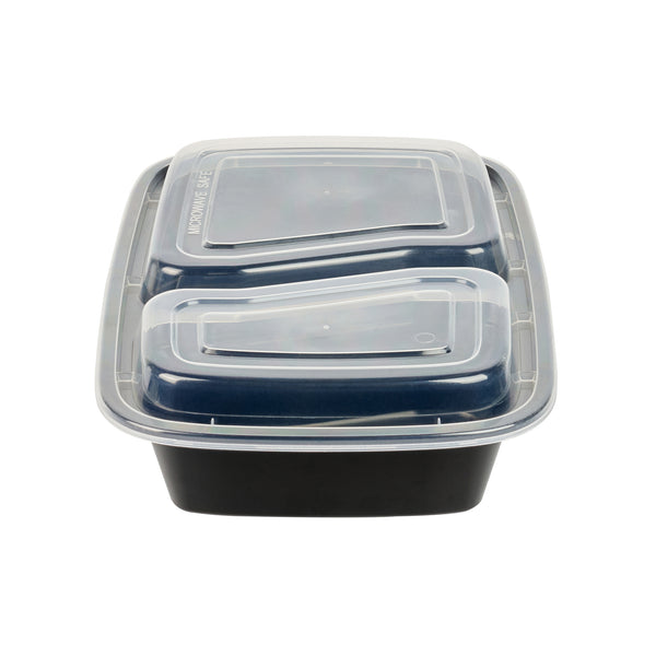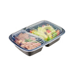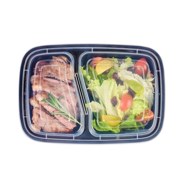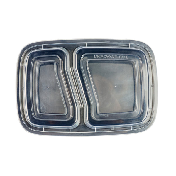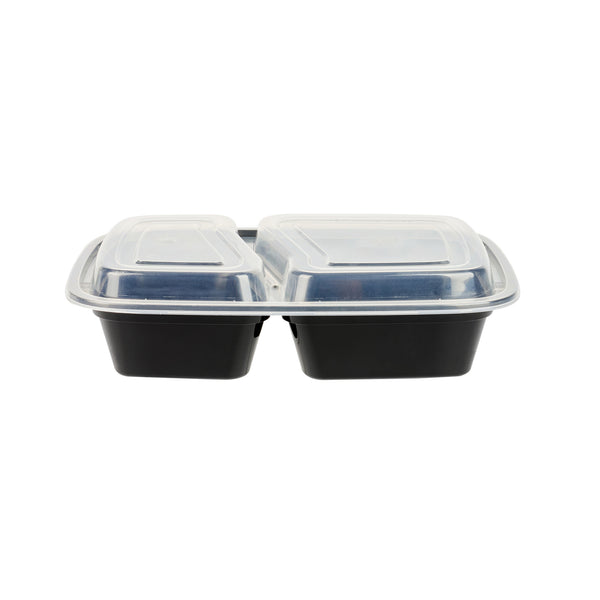 32 OZ PLASTIC 2 COMPARTMENT FOOD CONTAINER - WITH LID, MICROWAVABLE