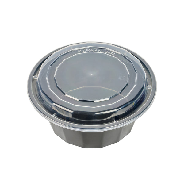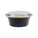 32 OZ ROUND BLACK PLASTIC TO GO BOX - WITH CLEAR LID, MICROWAVABLE
