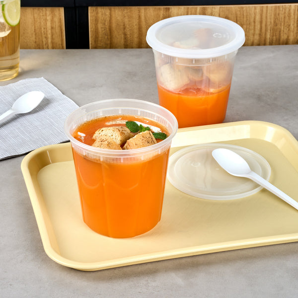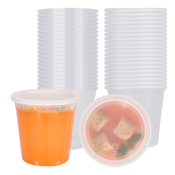 Preserve your leftovers in these clear plastic soup containers, designed for easy refrigeration. Their freezable design ensures your food stays fresh until you're ready to enjoy it again.