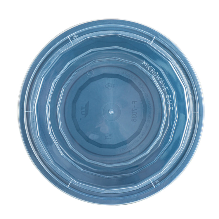 32 OZ ROUND BLUE PLASTIC TO GO BOX - WITH CLEAR LID, MICROWAVABLE